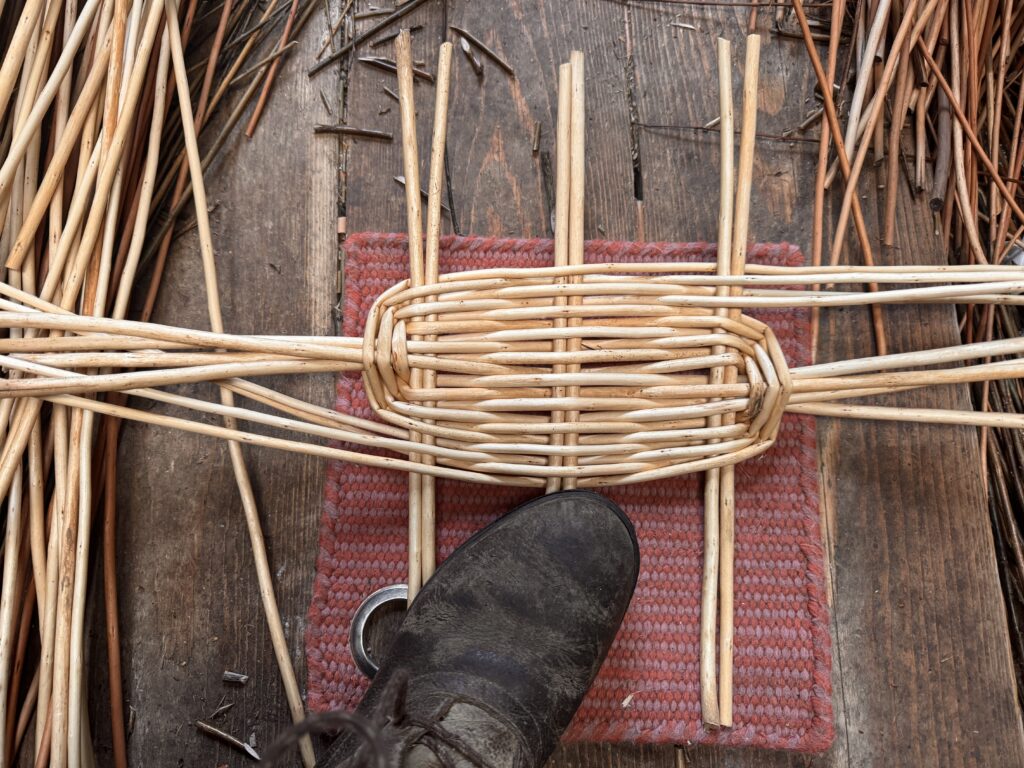 On a one day workshop for beginners you will be shown how and guided to make a traditional round underfoot base, and make a basket with or without a handle (you choose) to take home.